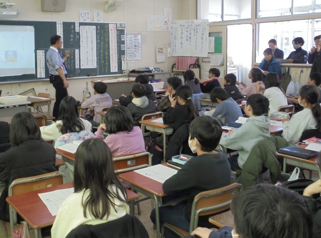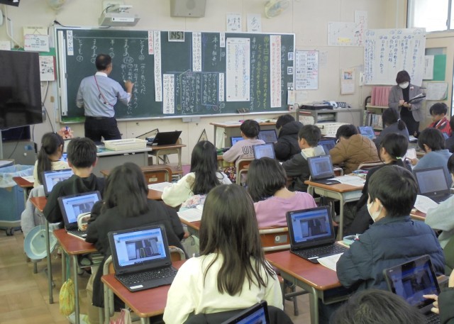 4年生が国語「数え方を生み出そう」を学習しました。校内研究授業なので、たくさんの先生が授業を参観しました。なか一(3から5段落)の筆者の考えをとらえて、自分の考えを持とうをめあてに、日本語とアメリカの小学生の数え方についての事例と理由を考えました。タブレット端末の発表ノートを活用して意見の交流をしました。