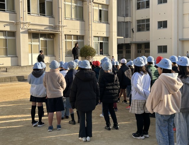 運動場で児童朝会をしました。校長先生からは、「1月20日から2月3日は大寒です。一年で一番寒い時期です。手洗い、うがいをしっかりしましょう。」とお話がありました。児童朝会終了後、1年生がチューリップの水やりをしました。冬は基本的には不要ですが、乾燥させないように時々水やりをしています。