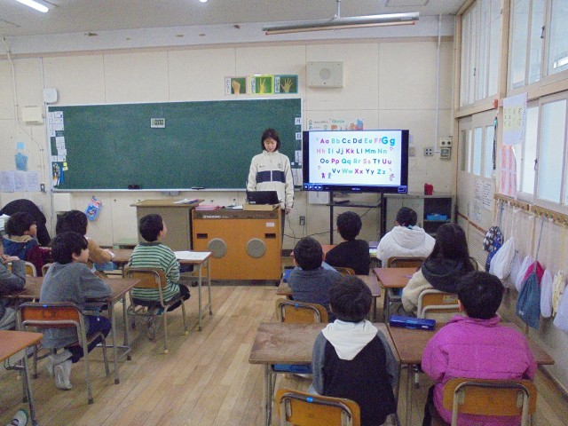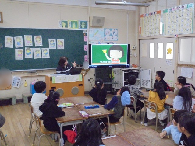 火曜日の朝の時間はイングリッシュタイムです。10分間ですが、英語に触れあう時間です。映像を見ながら音声を聴き、発音します。楽しく英語に触れあうことができるように努めていきます。