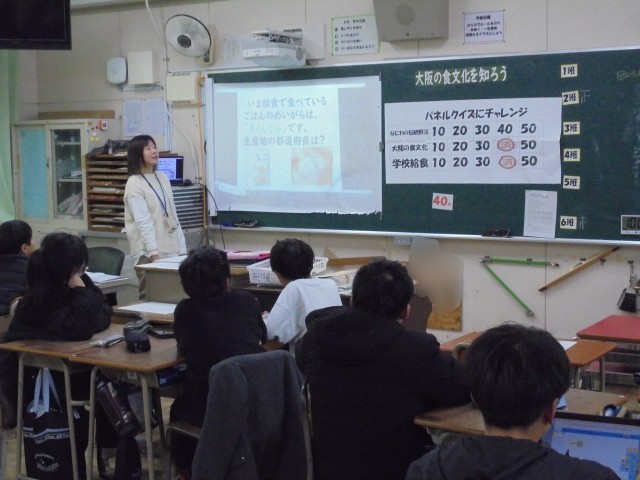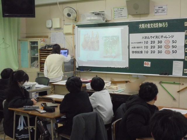 6年生が区内の栄養教諭の先生と「大阪の食文化」について学習しました。なにわの伝統野菜、大阪の食文化、学校給食の問題を選び、パネルクイズをしました。楽しく大阪の食文化について学びました。