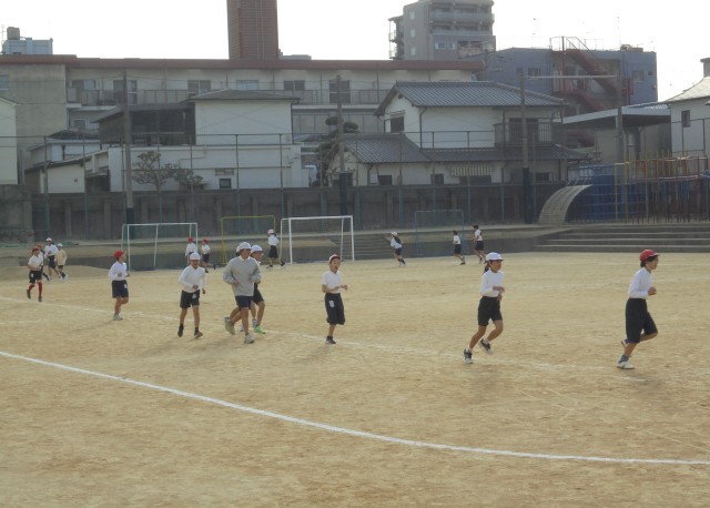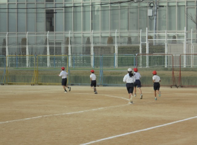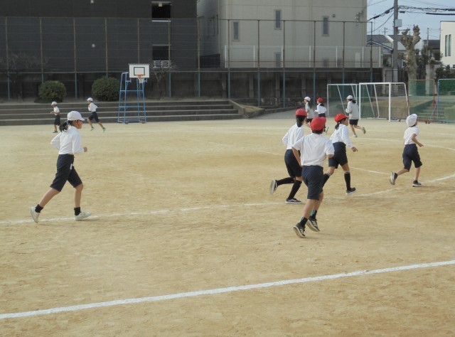 5年生が持久走をしました。10分間、無理のない速さで走り続けました。息をしっかりと吐き、腕をリズムよく振ると、長い時間走り続けやすくなります。
