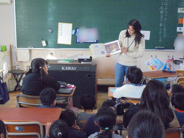 図書館ボランティアさんによる本の読み聞かせを、1年、3年2組、4年2組でしてもらいました。