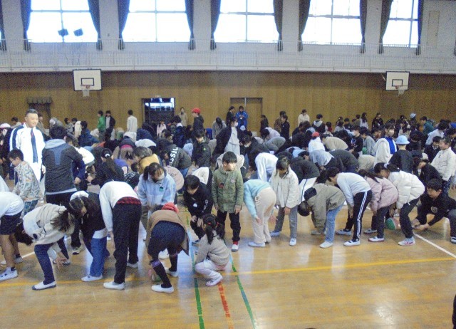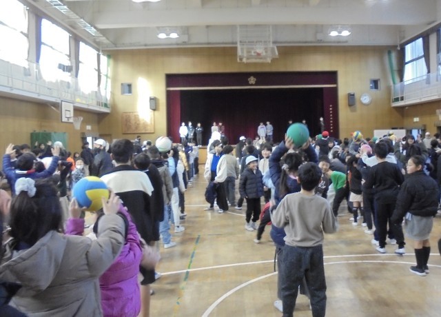 体育館で児童集会をしました。集会委員会が考えた「ボール運びゲーム」をしました。各スマイル班が一列に並び、ボールを頭の上から後ろに渡し、帰りは足の下からボールを渡します。盛り上がった集会になりました。