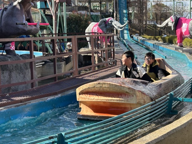 急流すべりが大人気です。上から滑り落ちる時の絶叫が計測されます。第2位の絶叫を出すグループがいました。