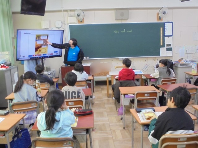 3年生がC-Netの先生と一緒に外国語活動をしました。小学校外国語活動教材を使って、「Who are you?」を学習しました。C-Netの先生の発音を聴いて、発音をしました。楽しく英語学習ができました。