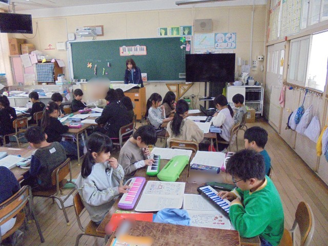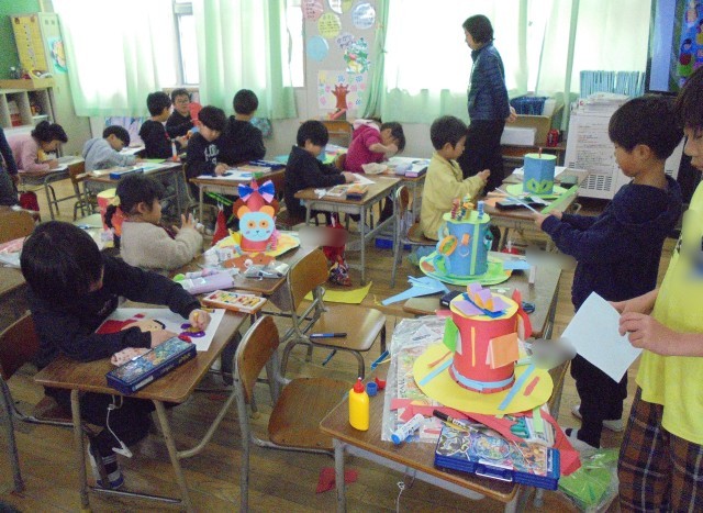 1組は図画工作「ふしぎなぼうし」を作っています。発想豊かな作品がたくさんできました。2組は音楽で鍵盤ハーモニカをしました。入学式で演奏する曲を練習しました。