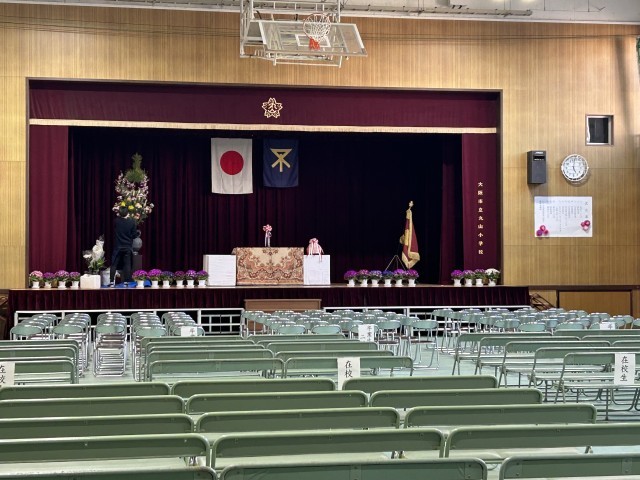 卒業式の準備をしました。明日は第107回の卒業式です。83名の6年生が卒業します。