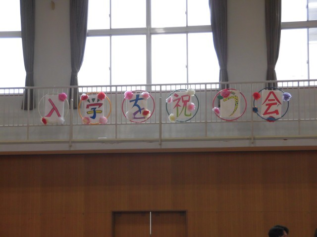 6年生と一緒に入場する1年生。学年の間を歩いて、1年生を歓迎する2~5年生の子どもたち。