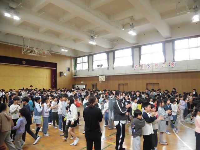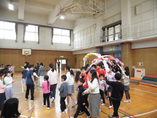 たくさんの丸山小学校のお兄さん、お姉さんに迎えられ、とても嬉しそうでした。