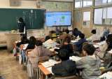 4年生が百人一首をしました。先生が上の句を読み、子どもたちが対応する下の句の札を...