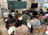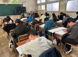明日の漢字検定に備えて、過去問題に取り組む学級、国語の単元テストをする学級など...