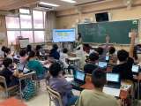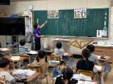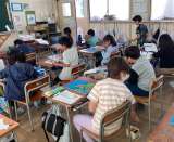 算数は比例の練習問題をしました。子どもたちが集中して問題を解いているので、教室...