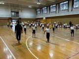 4年生が体育館で運動会の団体演技のテストをしました。学級ごとに丸山エイサーを踊...