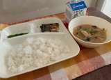献立は、さごしの塩こうじ焼き、みそ汁、えだまめ、ご飯、牛乳です。