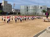 1年生がスポーツテストの50m走を計測しました。走る前にしっかりと準備体操、運...
