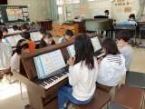 音楽室で4年生がリコーダーの練習をしました。「さくら笛」「花笛」の2曲を合奏し...