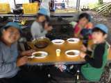 野外炊飯です。 かまどの火をおこすのに悪戦苦闘のグループが続出。 ようやくカレー...