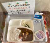 献立は、米粉のビーフカレーライス、野菜のピクルス、ぶどうゼリー、牛乳です。本日の...