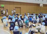 運動会の団体演技「エイサー」の練習を体育館で行いました。手作りのパーランクとバチ...