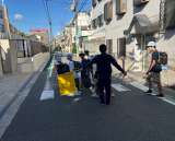 秋空のもと、子どもたちは元気に登校しました。近隣の大学の学生さんが登校指導をして...