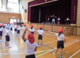 1年生が運動会の団体演技で行うダンスの練習をしました。曲に合わせてリズミカルに足...