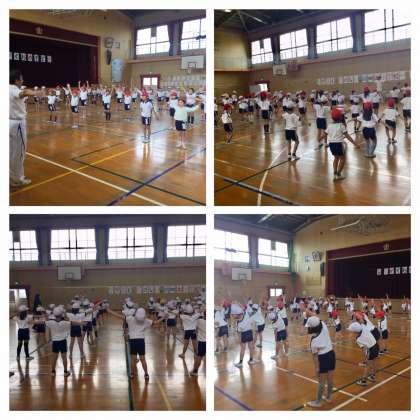 授業の様子(2年 ラジオ体操特別授業)その2 4/12