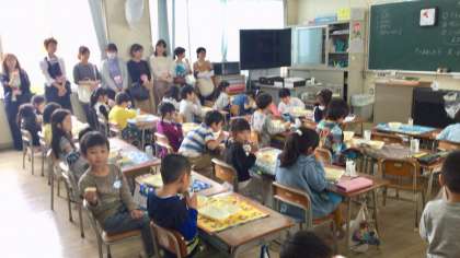 4月19日(金)、1年生の学習参観は給食の様子を見ていただきました。