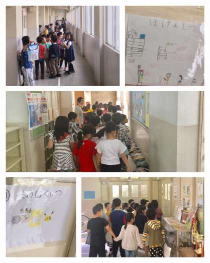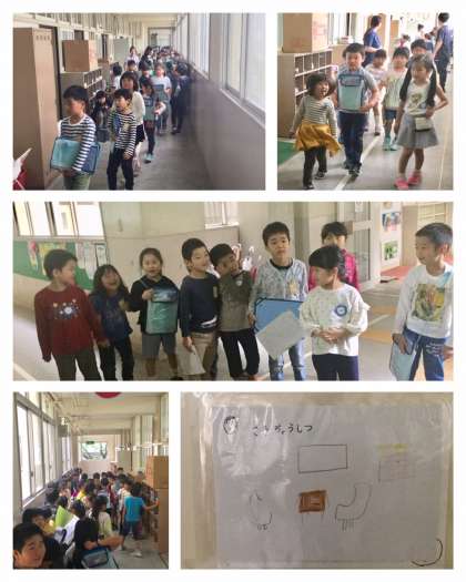 4月25日(木)2時間目、2年生と1年生がグループになって、校内たんけんです。