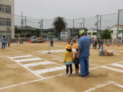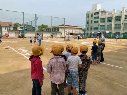 阿倍野警察の方に教わりながら正しい道路の歩行の仕方や横断の仕方を教わりました。