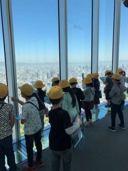 5月8日(水)にハルカスへ社会見学に行きました。初めて学習する社会科で、大阪市の様子について学びました。東西南北で様子の異なる大阪市をハルカスの展望台から眺めています。子どもたちは、「海が見える。」「大阪城だ。」「晴明丘小学校は、あそこにあるのかぁ。」とたくさんの発見をすることができました!