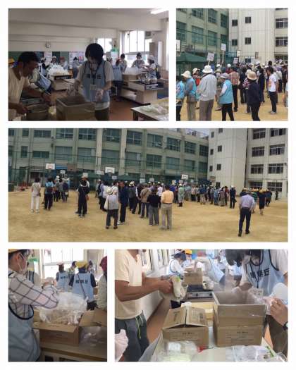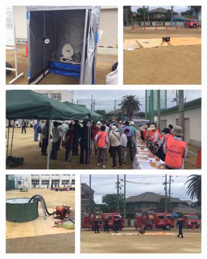 区役所・消防署・環境局・社会福祉協議会の官公署や晴明丘地域にかかわる地域連合町会・地域防災リーダー・女性防火クラブ・青少年指導員・PTAなど様々な方々が、朝早くから「まちなか防災訓練」に向けて準備をされていました。
