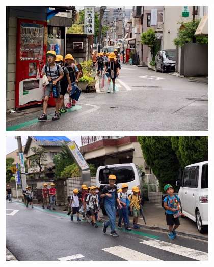 昨日の児童朝会で登下校時の交通安全について話をしましたが、グリーンベルトが狭く、どうしてもはみ出してしまう人がいます。車や自転車に十分に注意してほしいと思います。常に周囲を確認しながら、歩きましょう!