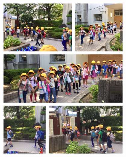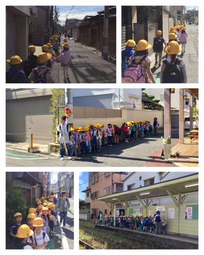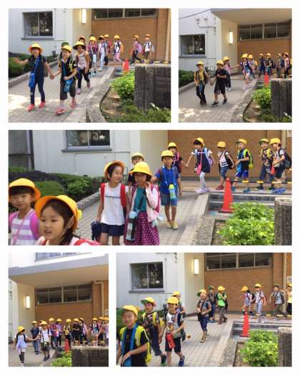 運動場では、わくわく集会をしているので集合しないで、正門から出発です。晴明通りを注意しながら歩いて、東天下茶屋駅に向かいます。