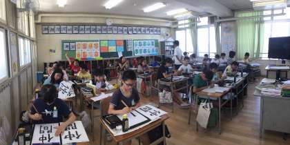 5月24日(金)5時間目、6年3組は習字に取り組んでいます。