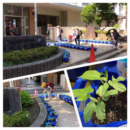 1年生の「あさがお」がすくすくと育っています。毎日の水やりが楽しそうです!