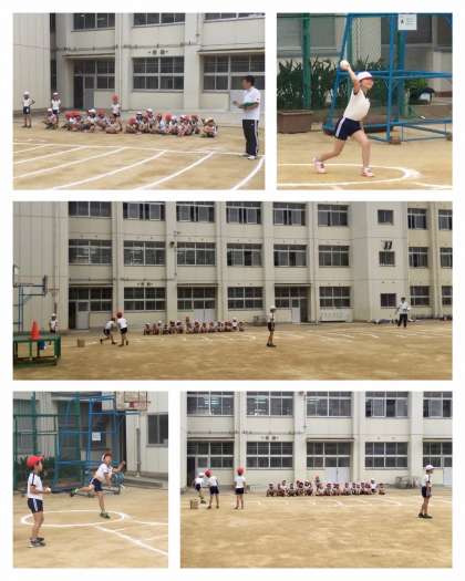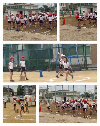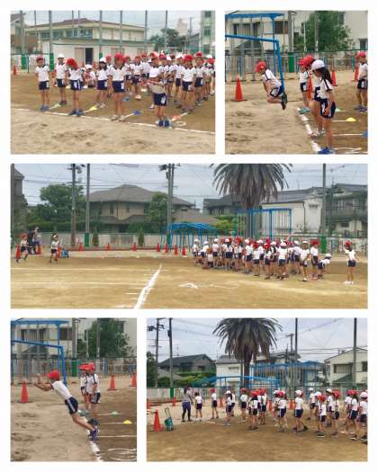 ソフトボール投げと立ち幅跳びの様子です。