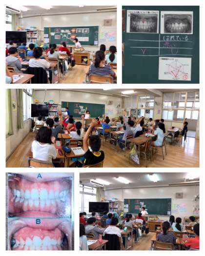 6月7日(金)2時間目(6年3組・4組)、3時間目(6年1組・2組)、歯科衛生士さんに来ていただき、「歯と口の健康教室」を開催しました。
