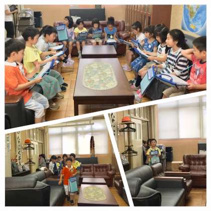 「校長室にはなにがありますか?」「校長室にはどんな人が来ますか?」「校長先生はどんな仕事をしていますか?」・・・質問をしたあと、礼儀正しくあいさつをして校長室を後にしました。