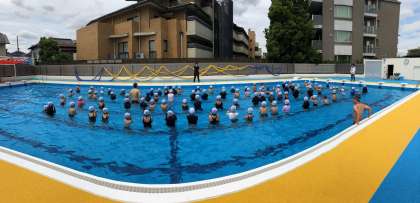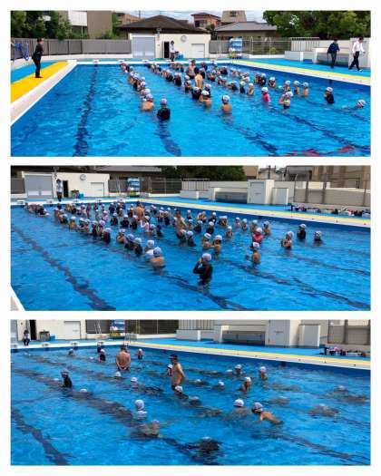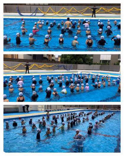 6月17日(月)2時間目、2年生のプール授業の様子です。気温23度・水温24度で基準はクリアしており、寒そうですが頑張っています。
