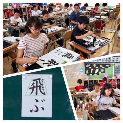 6月21日(金)1時間目、6年4組の習字の様子です。