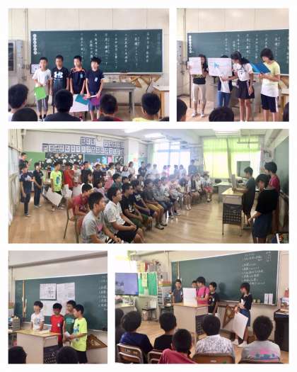 6月21日(金)3時間目、6年生が修学旅行に向けて学習した平和学習について、5年生に対しての発表会を行いました。