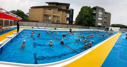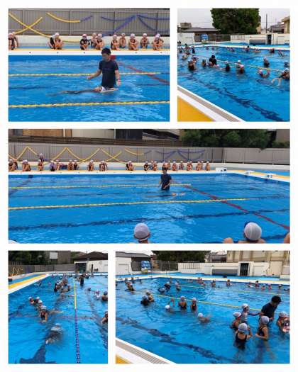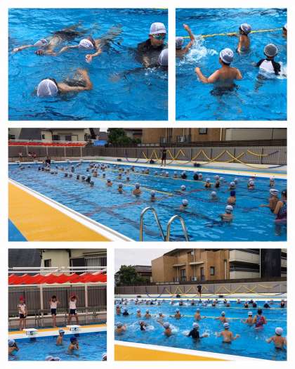 7月2日(火)5時間目、梅雨の中休み、曇り空ですが雨も降らず、水温も高く問題なくプールが可能です。