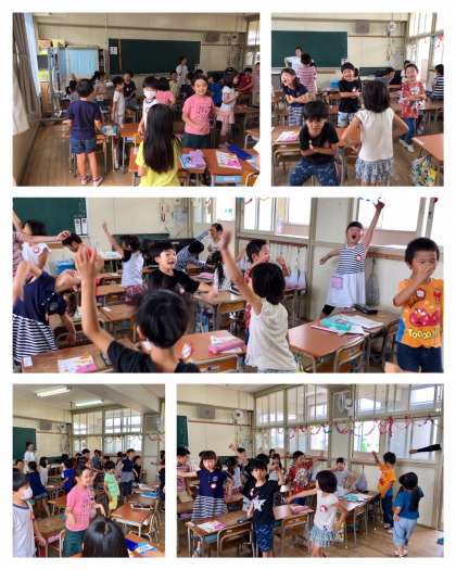 校長先生が見学に行ったので、みんなで「あいうえおんどく」の元気なダンスを披露してくれました。とても楽しそうです。