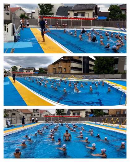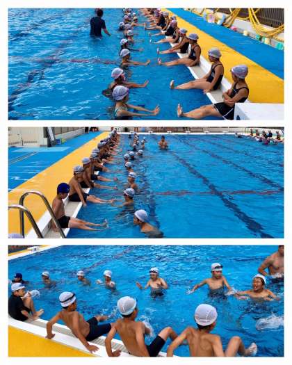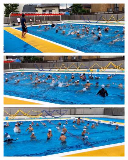 7月10日(水)5時間目、大阪市小学校教育研究会体育部の先生方の研究授業を3年生のプール授業で行われました。