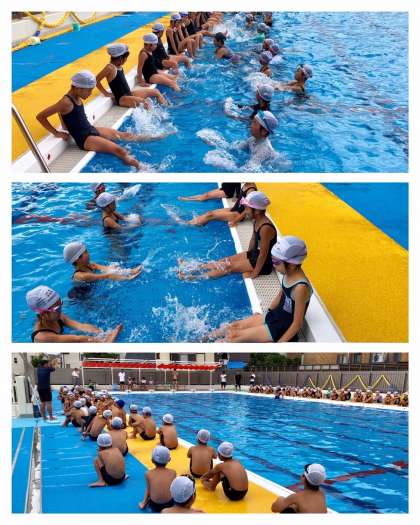 仕上げは、プールを縦に泳ぐ、リズム泳に挑戦です。