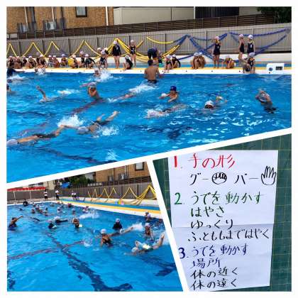 本時の課題は、面かぶりクロールでのいろいろな腕のかき方についてです。