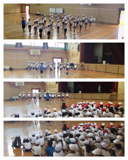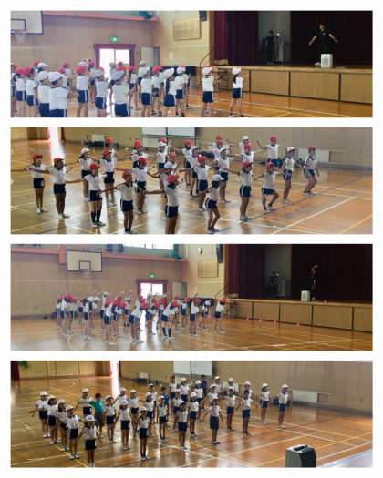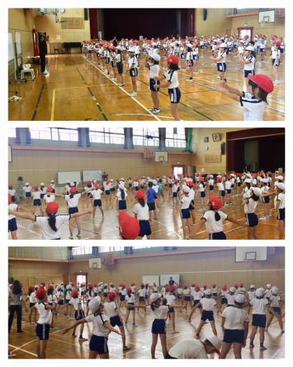 7月18日(木)1時間目、4年生は体育館でラジオ体操に取り組みました。