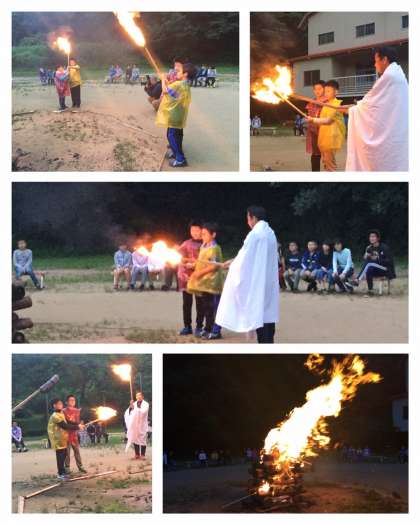 7月21日午後6時45分、レク係が一足先にファイヤー場へ。