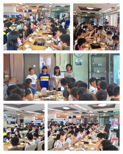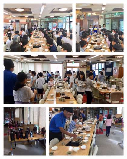食事係がユニークなあいさつをしてから、「いただきます!」
