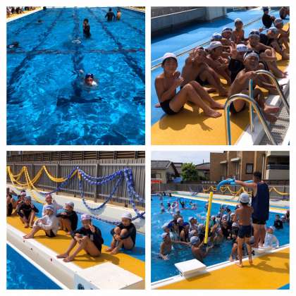 梅雨も明け、厳しい夏の日差しがふりそそいでいます。プールがとても気持ちよさそうです。泳法の練習をしたりボールやポールを使って遊んだり、子どもたちはとても楽しそうです。